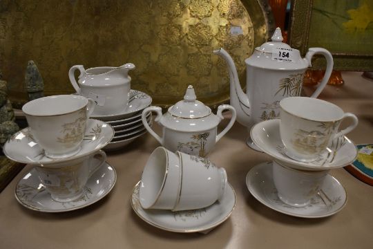 A vintage Japanese coffee set having gilted bamboo designs to white porcelain, comprising twenty pieces.