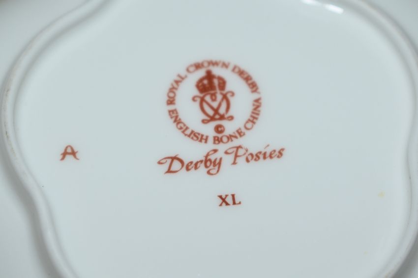 A selection of Royal Crown Derby bone china 'Derby Posies' pattern teawares, comprising seven cups, seven saucers, small lobed dish, six side plates and bread plate, twenty two items in total