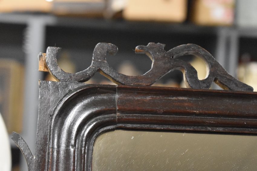 A late 19th century mahogany fretwork wall mirror with reeded molding, damage to fretwork pieces included.