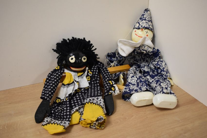 Two puppets in the style of Pelham, one oriental and the other AF.
