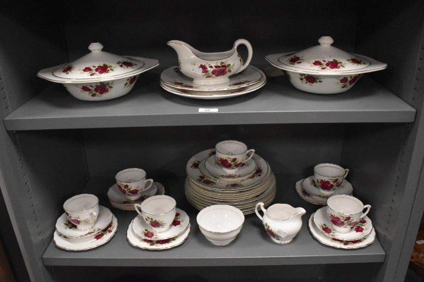 A selection of 20th Century Colclough Amoretta patterned tableware, including lidded tureens, teacups and saucers, and plates