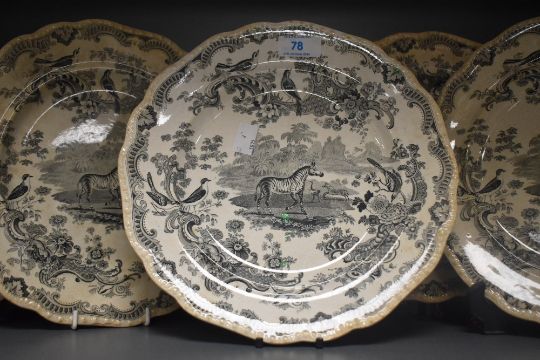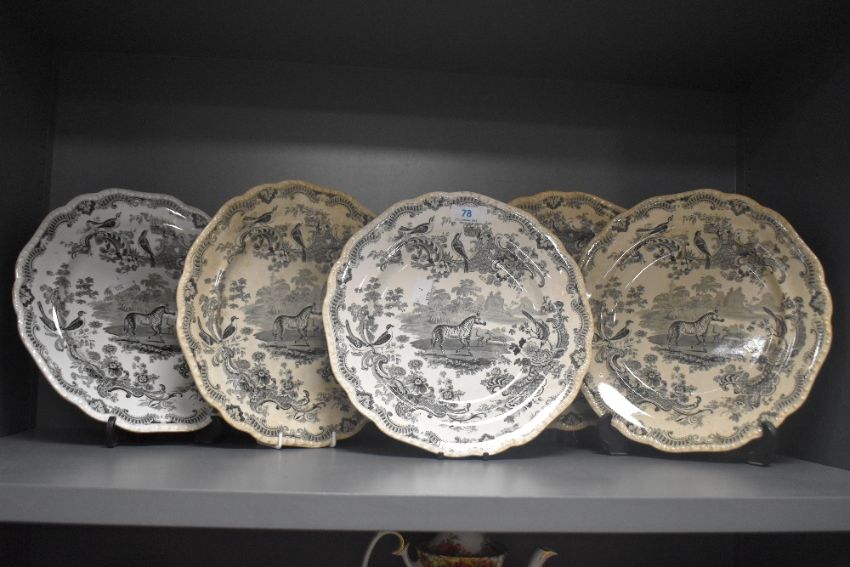 Five John Meigh & Son Staffordshire plates in the 'Zoological Sketches' design, each with a diameter of 26cm