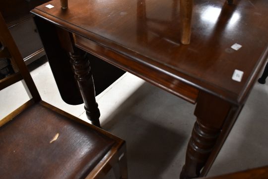 A Victorian mahogany drop leaf dining table on turned legs, closed size approx. 103 x 71cm