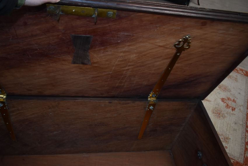 A large 19th century brass bound and handled mahogany/teak maritime/seafarers' chest with ornate brass straps and handles , dimensions approx. 140 x 61 x 59cm Provenance by repute, formally owned by Bishop Taylor Smith (Chaplin General to the forces and missionary) died at sea