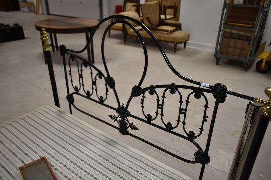 A Victorian cast and brass double bed frame and base