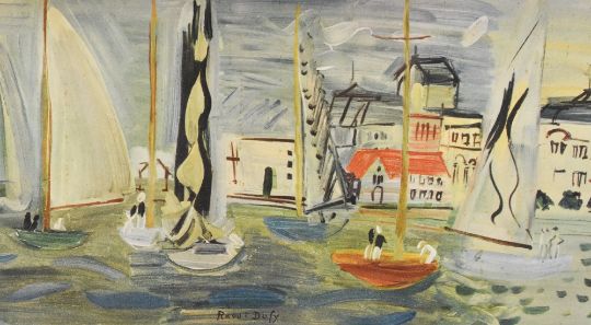 After Raoul Dufy. Two colour prints 'Les Regates 2' and another more abstract version of the same sailing scene. 20th Century, in recessed modern white frames. 31.5cm x 22cm.