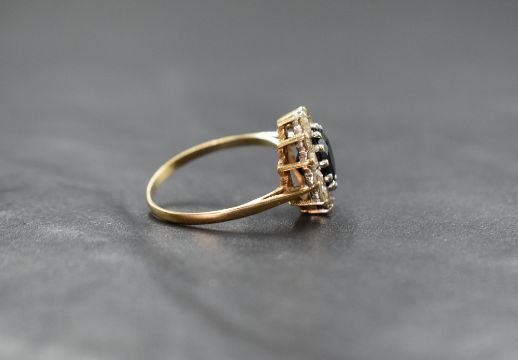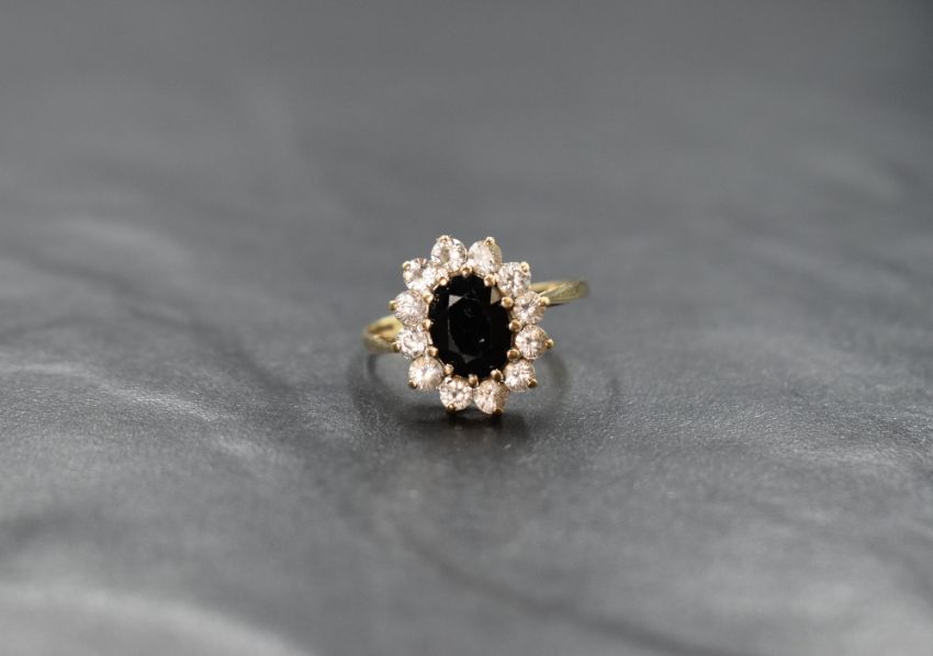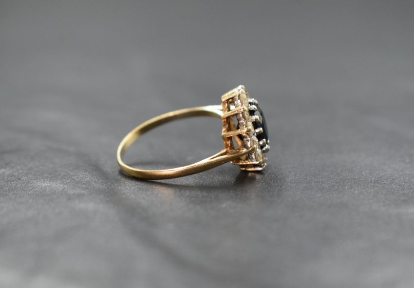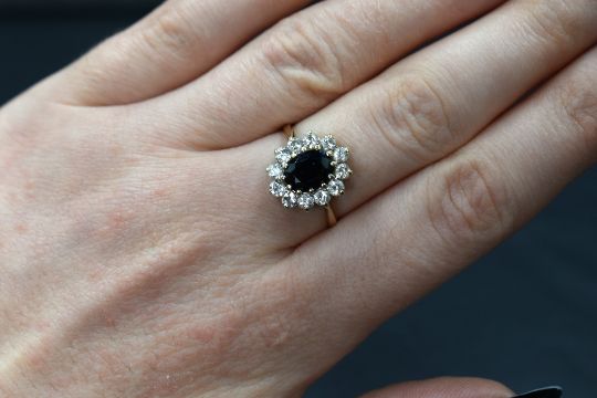 A 9ct gold sapphire and cubic zirconia cluster ring, size P/Q & approx 2.6g