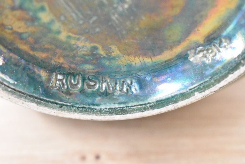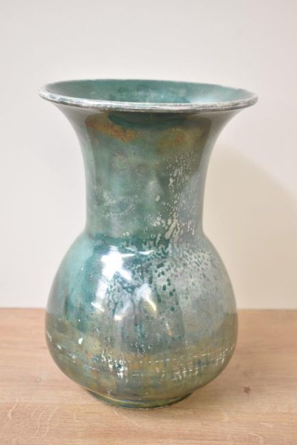 An early 20th century Ruskin pottery art vase, having flared rim over alabuster body, decorated in green drip glaze, impressed with makers mark 'Ruskin 1914' to base, h22cm Condition: Presented in good condition.