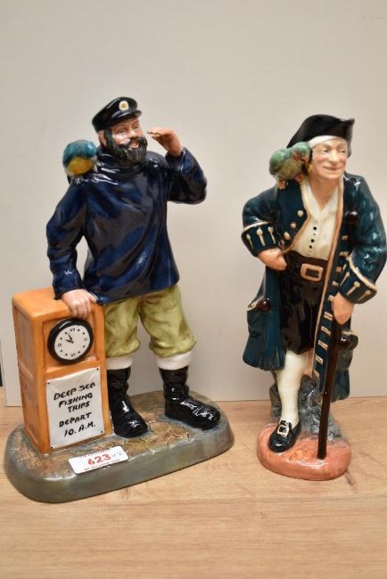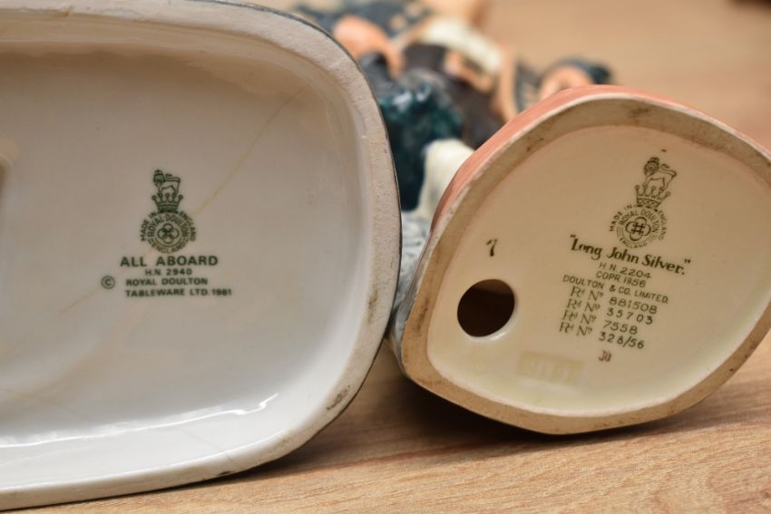 Two Royal Doulton bone china figures 'All Aboard' HN 2940 and 'Long John Silver' HN 2240.