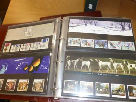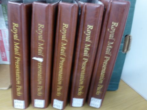 GB 1968-99 COMPREHENSIVE COLLECTION OF PRESENTATION PACKS IN RM ALBUMS 5 volumes of Royal Mail albums each full with presentation packs from the late 1960's through to 1999. Several hundred. Odd earlier packs have had shrink wrap removed to keep items laid flat ,and odd other earlier slight shrinkage noted. Non the less a fine collection of a few hundred items.