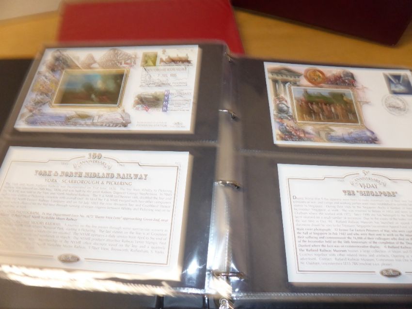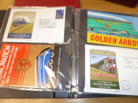 GB + SOME WORLD TRIO OF ALBUMS WITH FIRST DAY COVERS, EVENT COVERS, RAILWAYS etc Trio of cover albums with in the region of 150 covers, each with varied collections, one largely railway orientated, other just world and other a mix of 1990's GB. Some better items noted.