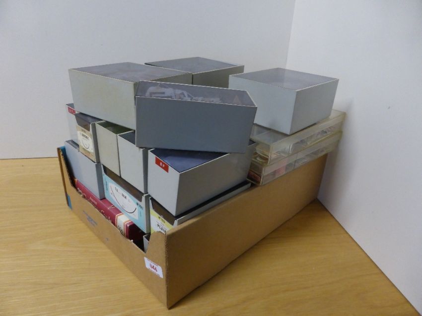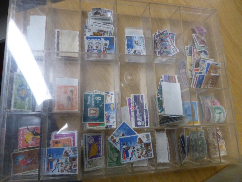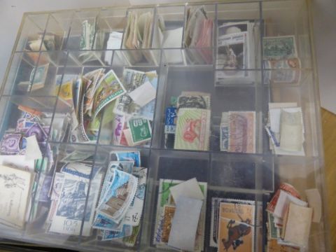 GB & WORLDWIDE COLLECTION IN 20+ PLASTIC CASES AND CONTAINERS LARGELY OFF PAPER Box with 20+ containers containing GB stamps and world stamps. (further more couple of the containers appear to hold accessories etc) GB and world content noted. Thousands and thousands of stamps to sort here.