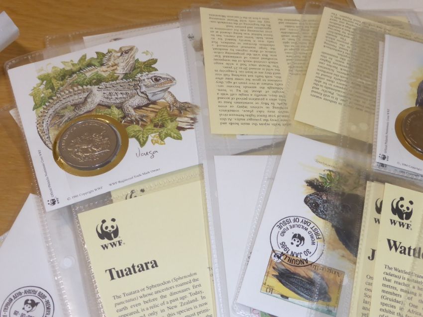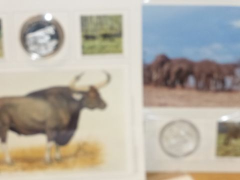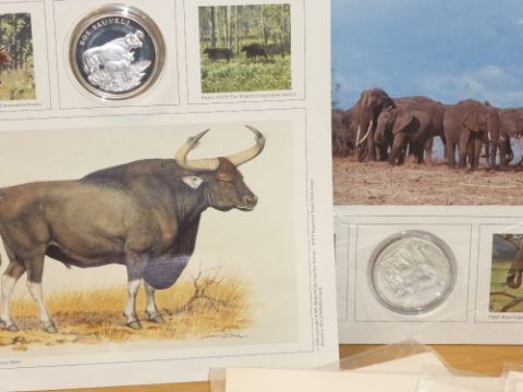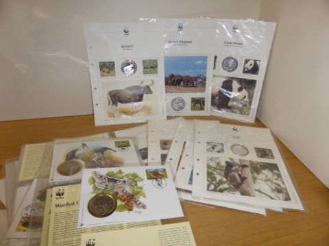 WWF COLLECTION OF 22 NUMISMATIC COIN COVERS INC 8 SILVER ONES (160gms in weight) Large sleeve with range of numismatic and medallic covers from the WWF issues, 13 covers with medallic/numismatic coin covers other 8 silver (.999) Pobjoy Mint coins, each coin weighing 20gms.