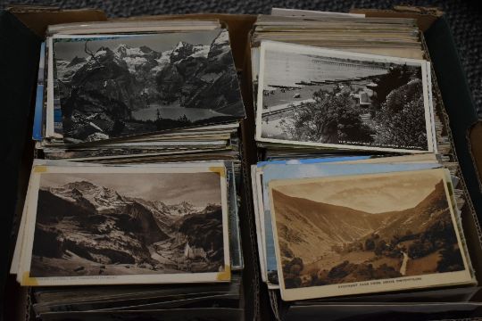POSTCARDS, 2 BOXEX OF APX 1300 MIXED & TOPOGRAPHICAL POSTCARDS Box with an estimated or so 1300 mixed and topographical cards, much UK orientation, however scattering of overseas items noted. GV to QEII era. Good sorter lot.