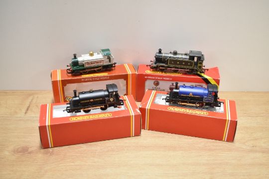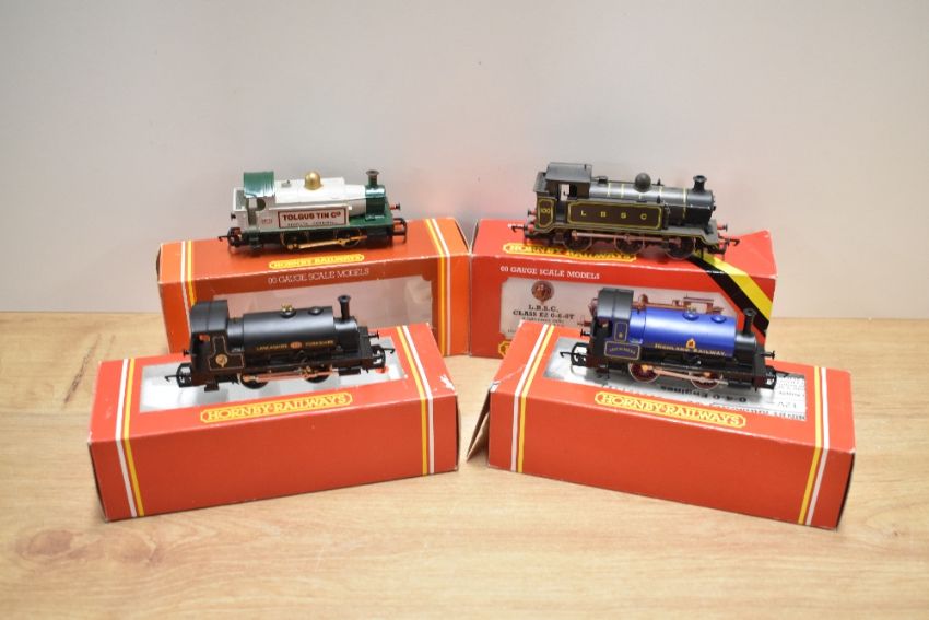 Four Hornby 00 gauge Tank Engines, R150 0-4-0 Lancashire & Yorkshire, R153 0-4-0 Tolgus Tin Co, R255 0-4-0 Highland Railway Lochness and R353 0-6-0 LBSC 100, all boxed with inner packaging, very little use