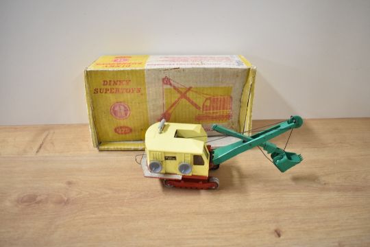 A Dinky Supertoys die-cast, 975 Ruston Bucyrus Excavator, yellow cab, green shovel and red chassis, black tracks, one damaged, in original box with internal packaging