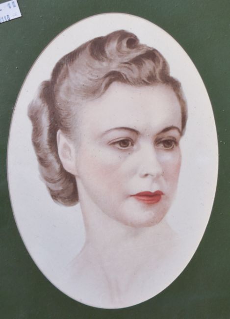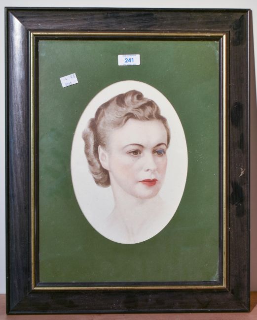Artist unknown, watercolour, portrait of a young woman, oval within a green card mount and moulded fame, under glass 26.5cm x 19cm & 50cm x 40cm overall.