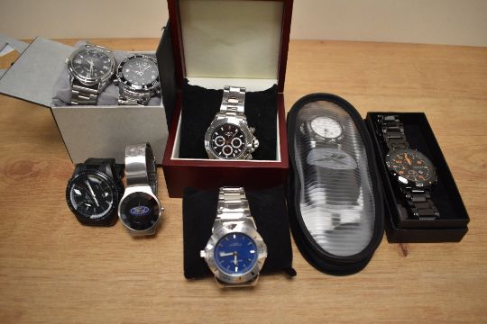 A collection of wristwatches, including Ford, Curren, Reebok and Dunlop, etc