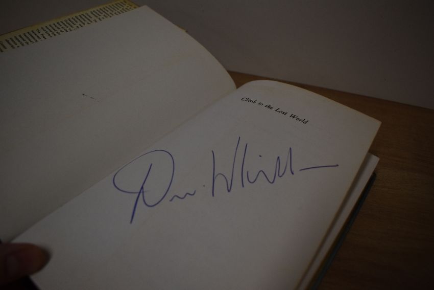 Mountaineering. MacInnes, Hamish - Climb to the Lost World. London: Hodder & Stoughton, 1974. 1st edition. SIGNED by expedition member, Don Whillans, on the half-title. Hardback in dust jacket. (1)