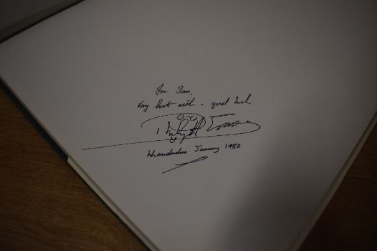 Mountaineering/Photography. Lovins, Amory - Eryri, the Mountains of Longing. Photographs by Philip Evans. San Francisco: Friends of the Earth, 1980. Inscribed by the photographer on the first blank. Hardback in dust jacket. (1)
