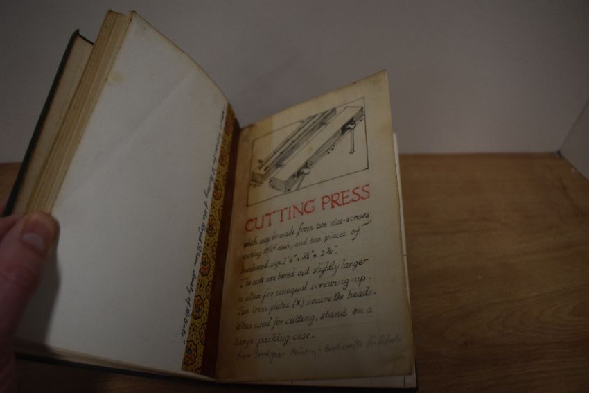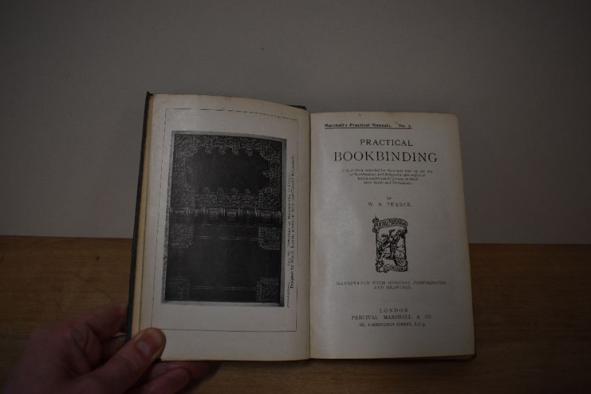Curio. Bookbinding. Pearce, W. B. - Practical Bookbinding. London: Percival Marshall & Co. No date, circa 1920's. With associated manuscript enclosures at rear (see images). (1)