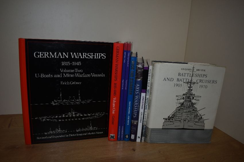 Naval History. German Warships and related. Includes: Groner's German Warships 1815-1945 in two volumes (1990/91, 1st English edition); etc. (9)