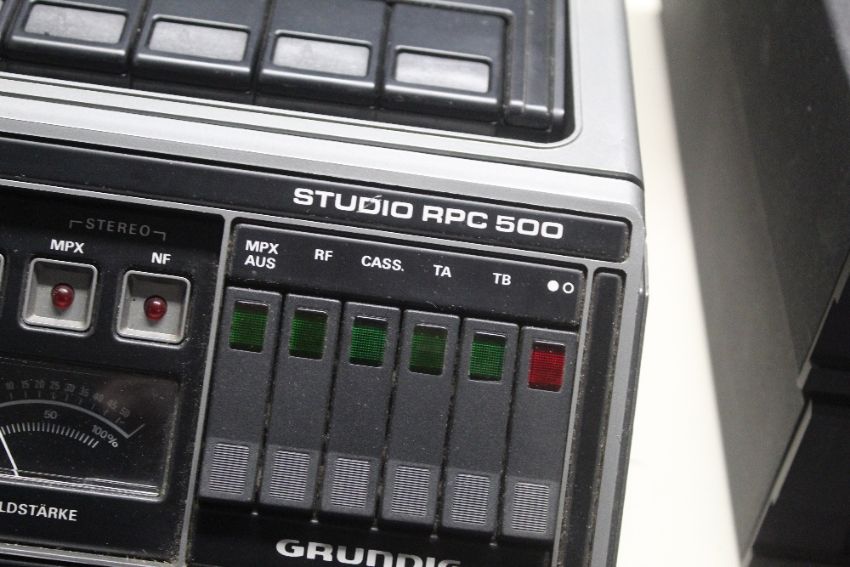 A Grundig RPC500 vintage super - hifi system with cassette deck and turntable - such a great look to this with all the lettering being on the original German text -a rare retro piece with a nice Dual turntable 1239A Automatic belt drive
