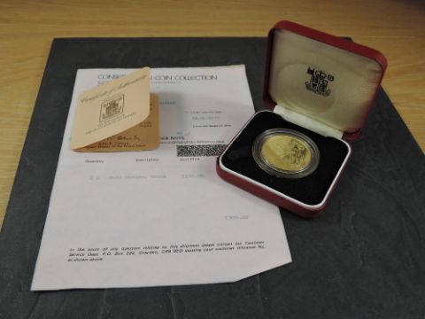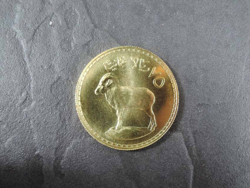 A 1978 Oman 75 Rial Gold Coin, Arabian Tahr to reverse, Uncirculated in plastic capsule and Royal Mint fitted case with Royal Mint certificate, weight 33.6g, .900 Fine Gold, part of the Conservation Coin Collection sold by Spinks, No 15 of the collection of 24 Gold Coins, with Advice note dated 1978