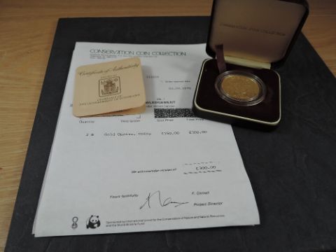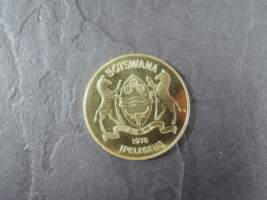 A 1978 Botswana 150 Pula Gold Coin, Brown Hyena to reverse, Uncirculated in plastic capsule and Conservation Coin Collection fitted case, with Royal Mint certificate, weight 33.6g, .900 Fine Gold, part of the Conservation Coin Collection sold by Spinks, No 18 of the collection of 24 Gold Coins, with Advice note dated 1978