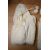 Five newborn baby garments, comprising five hand knitted garments in cream crochet: a bonnet with pink ribbon tie, a top with buttons at the rear neck, and two babies wearable blankets, and including a long traditional christening dress made of synthetic fabrics.