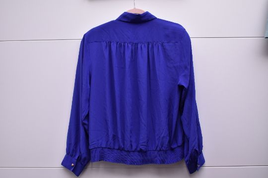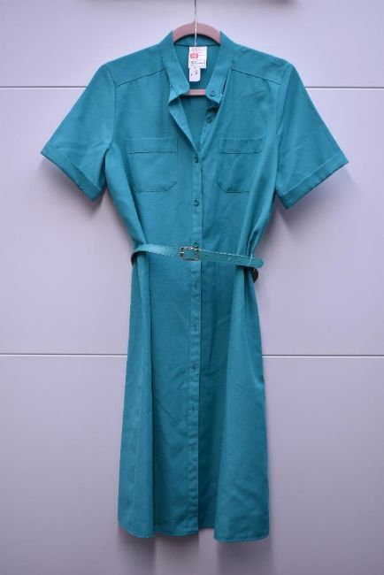 Six classic 1980s ladies garments in shades of blue and green, all in good gondition. Typically of the 80s era, these womenswear garments showcase a twist on classic cuts and features that originated in mens workwear, such as double-breasted buttons and notch lapels, pleats and wide shoulders. Sizes 10-16.