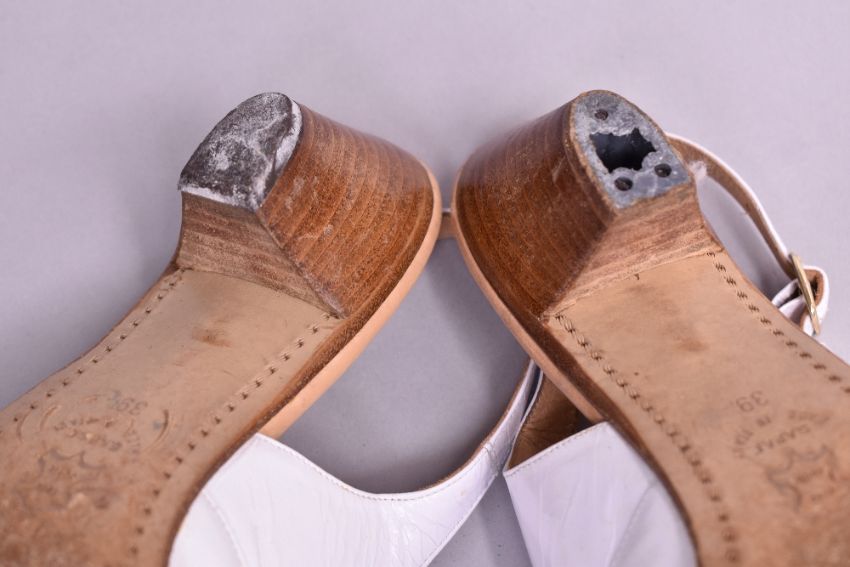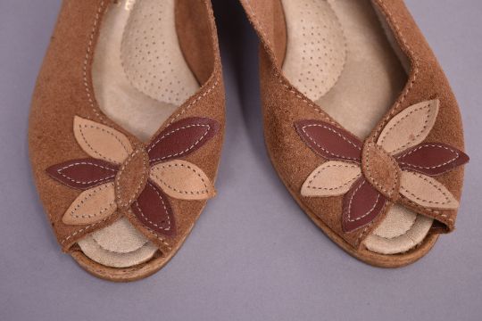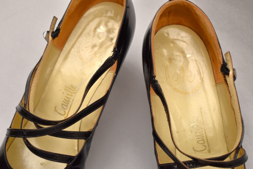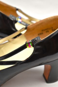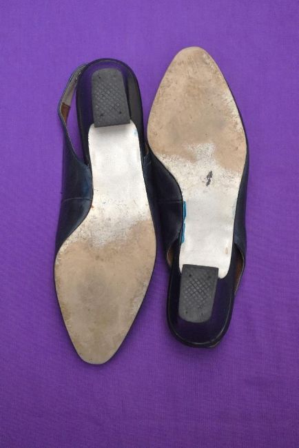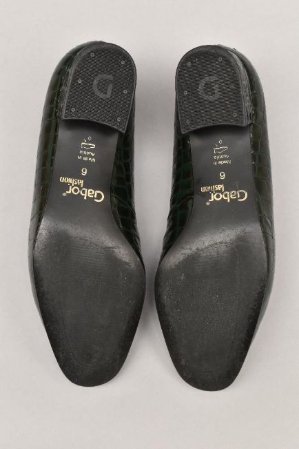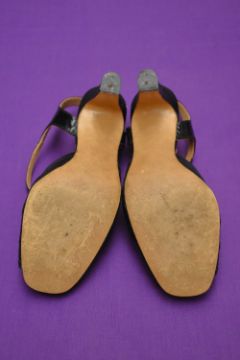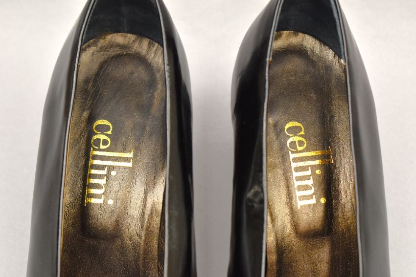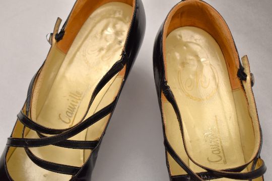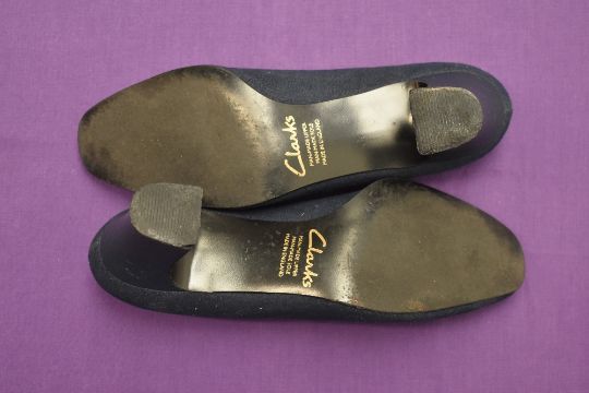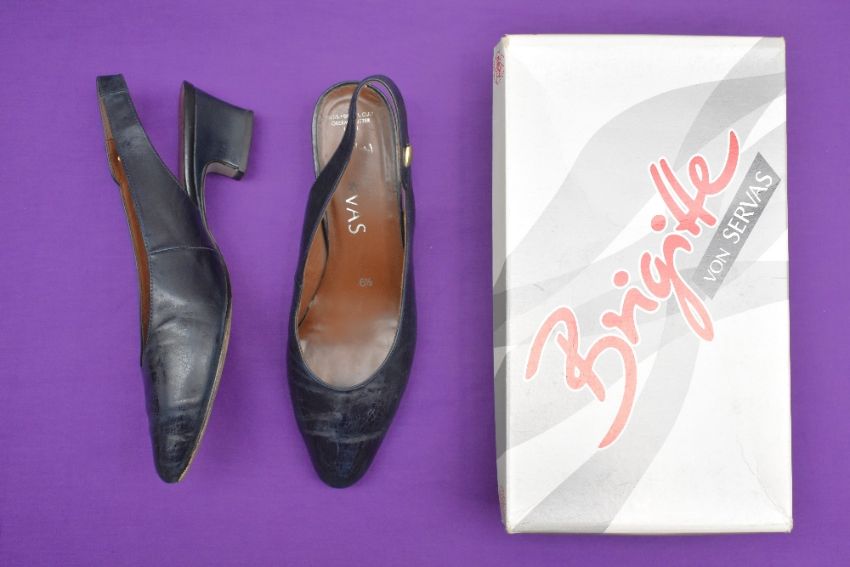 Sixteen pairs of 1940-1990s womens formal or evening shoes. Mostly leather a range of attractive colours such as forest green and pillar box red, patent examples, some Italian made examples. A range of sizes, 4.5-7.5, conditions pictured.
