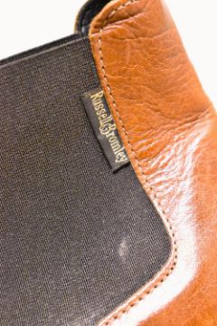 Two pairs of Russell & Bromley boots, in tan Italian leather, one pair a vintage lace-up style with <1' flat heel, the other pair a chelsea boot with brown elastic ankle panel and 2.5' wood block heel. Lovely condition, light signs of wear the the heels and soles, both size 38.5.