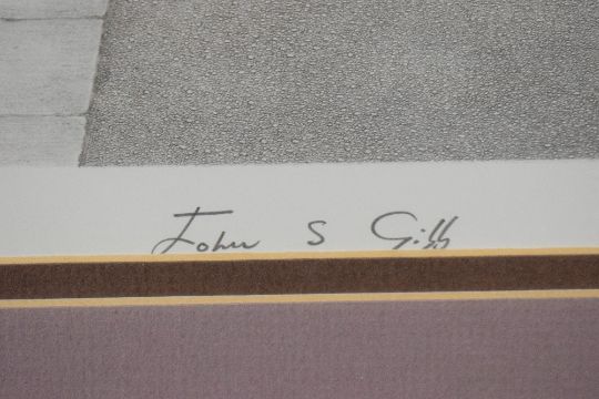 Local interest* After John S Gibb (British b.1939) a limited edition monochrome print 'Furness Abbey Station' signed and numbered 259/500 in pencil to margin, within a stepped card mount and moulded frame, under glass 37cm x 52cm & 57cm x 71cm overall, sold along with a smaller print by after the same artist 'Uverston Station' 33cm x 39.5cm overall.