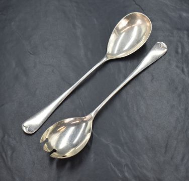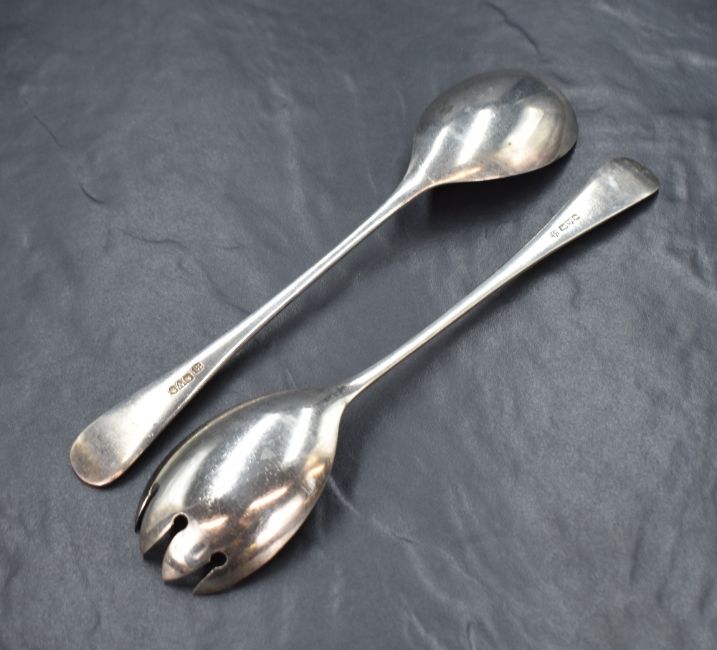 A pair of George V silver Old English pattern salad servers, marks for Chester 1915, maker Barker Brothers, 106g gross