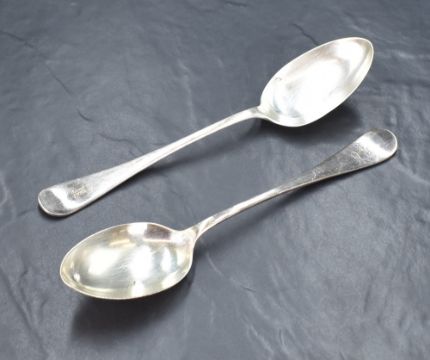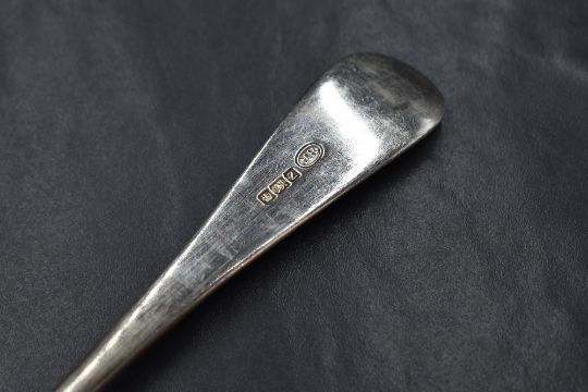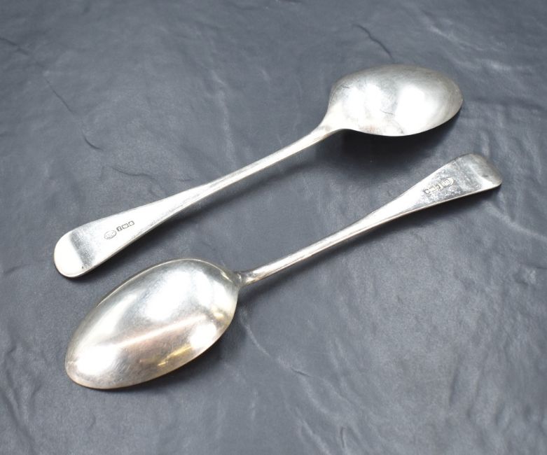 A pair of Victorian silver Hanoverian pattern serving spoons, having an initial engraved to the terminals, marks for Sheffield 1892, maker John Round & Son Ltd, 140g