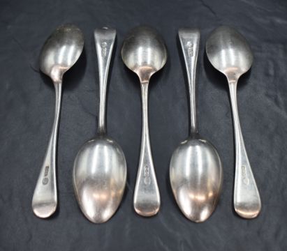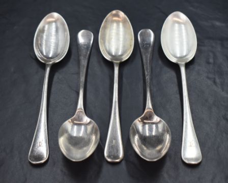 A group of five Victorian silver Hanoverian pattern spoons, having an initial engraved to the terminals, marks for Sheffield 1892, maker John Round & Son Ltd, 236g