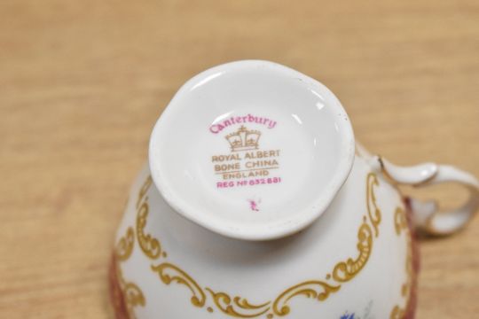 A Royal Albert Canterbury pattern bone china tea service decorated in foliage with gilt edge, ( 15 ).