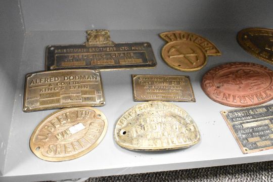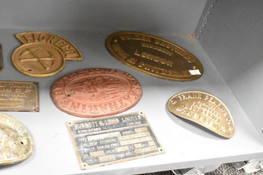 A Sulzer Brothers engineers of London cast iron oval plaque, w24cm, sold together with various other plaques, to include J.Beet Ltd, Pioneer, Burnett & Lewis Ltd ect, ( 10 ).