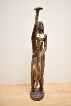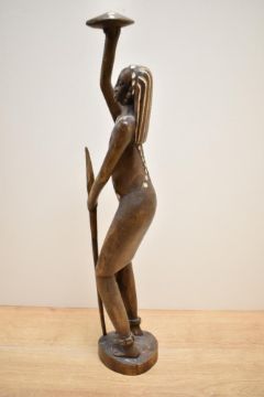 A hand carved wooden sculpture of a man with spear and shield, h50cm