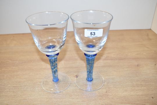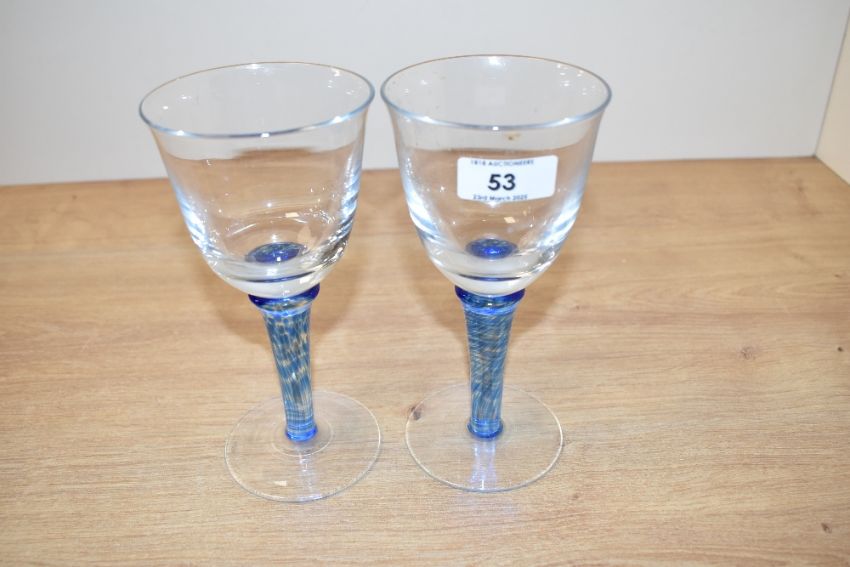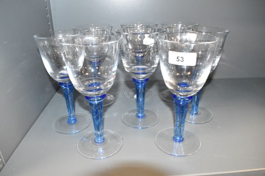 A set of 8 Denby glasses having imperial blue coloured stems, h17.5cm, ( 8 )