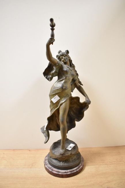 After Louis Auguste Moreau (1834-1917), A 19th century patinated metal figure of a young woman dancing, signed to base Aug.Moreau, h47.5cm
