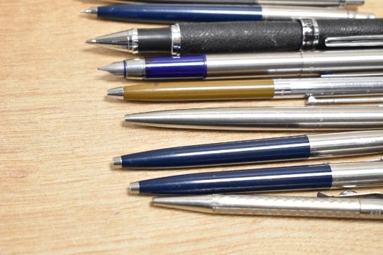 A selection of Fountain pens, Ballpoint pens and propelling pencils includes a boxed Parker 25 Flighter, Papermate na Parker ballpoints etc