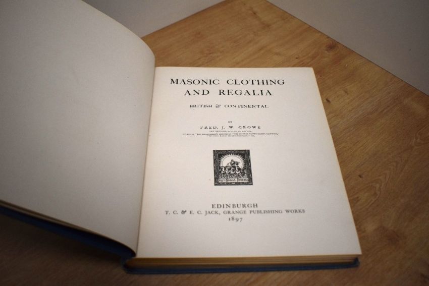 Freemasonry. Crowe, Fred. J. W. - Masonic Clothing and Regalia: British & Continental. Edinburgh: T. C. & E. C. Jack, 1897. First edition. 36 colour plates. Original cloth, gilt titles. (1)
