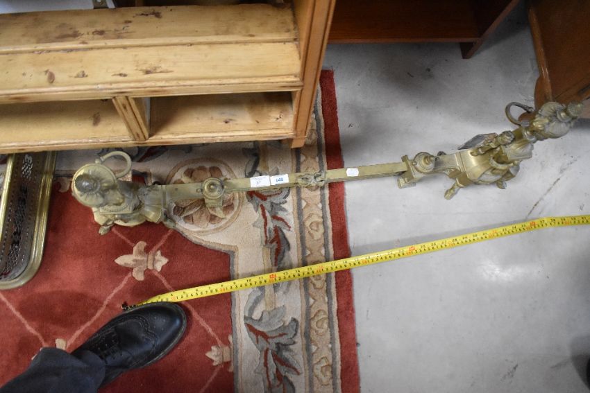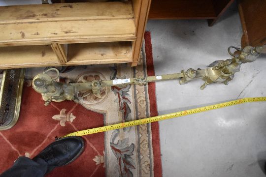 A selection of antique brass fire fenders, main two approx W125, D32, H17, additional image of other for scale purposes