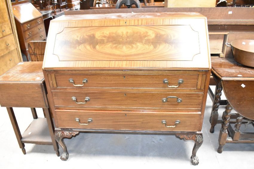 An early 20th Century bureau, on ball and claw feet, width approx. 107cm