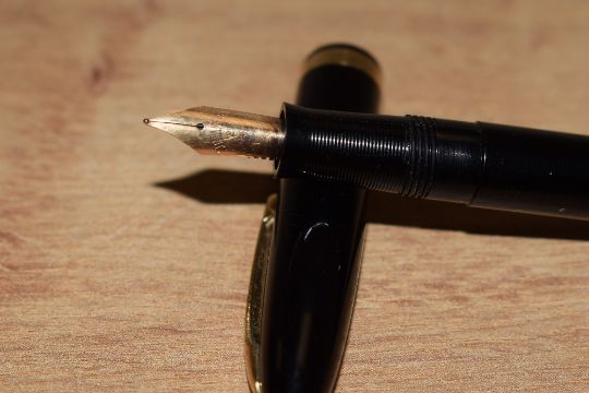 A boxed Sheaffer Cadet touchdown fill fountain pen in black with single band to the cap having Sheaffer 23 14K nib