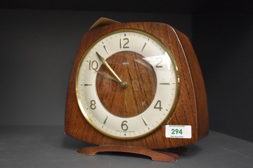 An early 20th century 'Smiths' 8 - day mantel clock, having floating balance wheel and single gong strike, h19cm