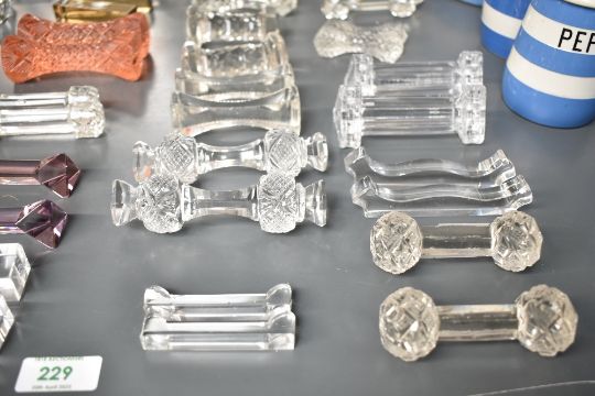 A group of glass knife rests in various shapes, colours and sizes, (40)