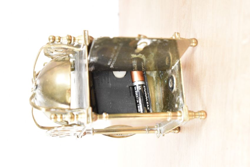 An electric mantle lantern clock, having chapter ring with Roman numerals, engraved to back 'Smith's Clock and Watches', h14cm
